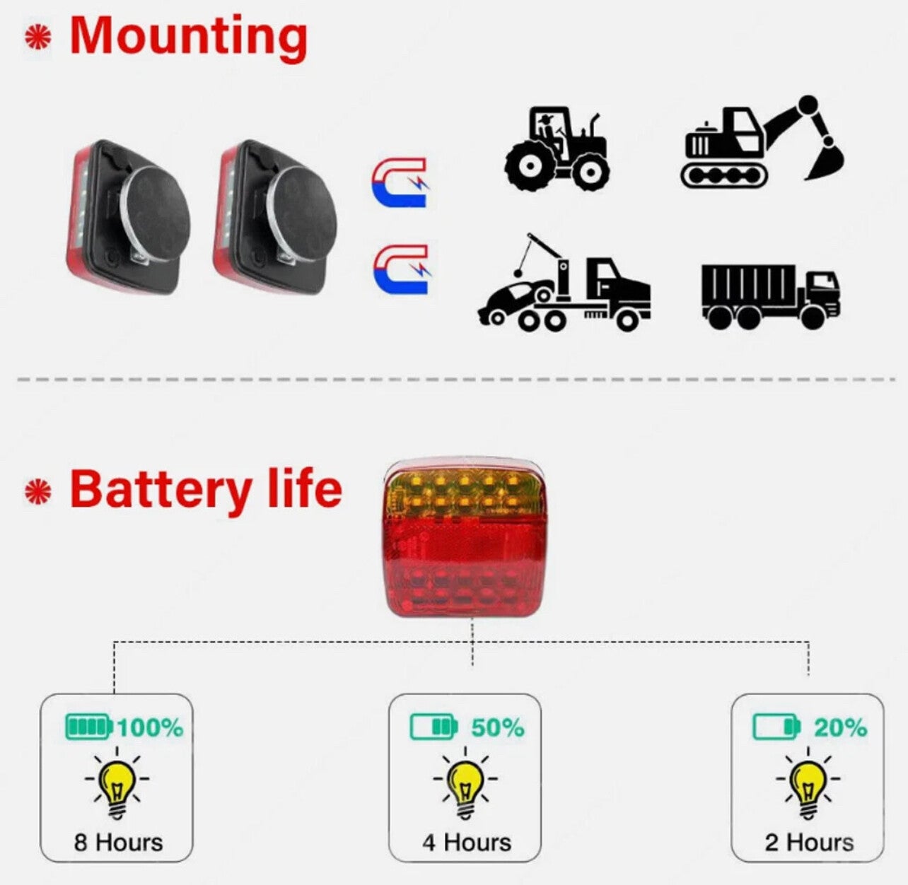 - 【Wireless & Magnetic Design】These trailer tail lights are wireless, eliminating the need for complicated wiring. The lights have magnets for added stability, making them easy to attach and detach.